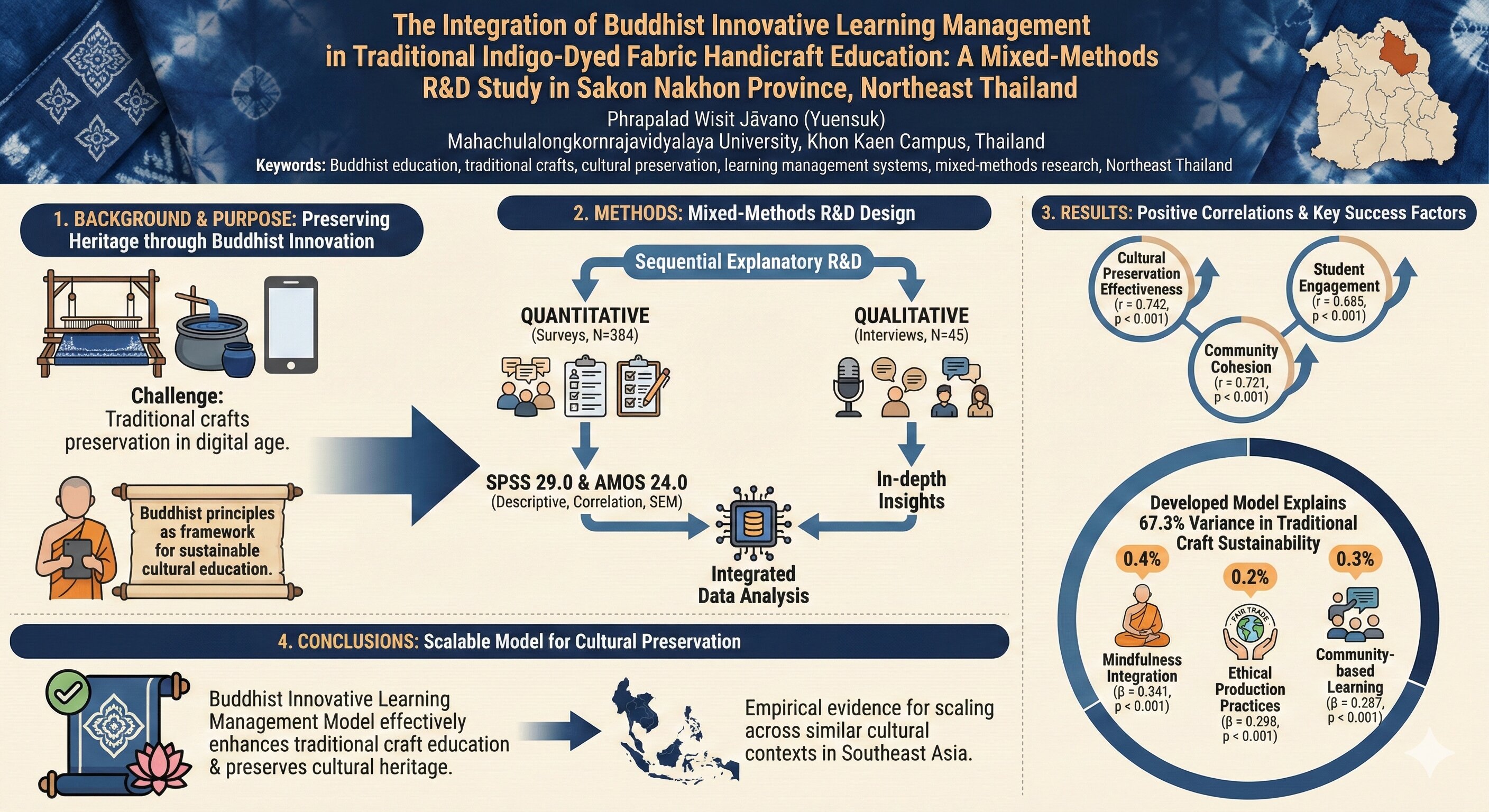 • The Integration of Buddhist Innovative Learning Management in Traditional Indigo-Dyed Fabric Handicraft Education: A Mixed-Methods Research and Development Study in Sakon Nakhon Province, Northeast Thailand