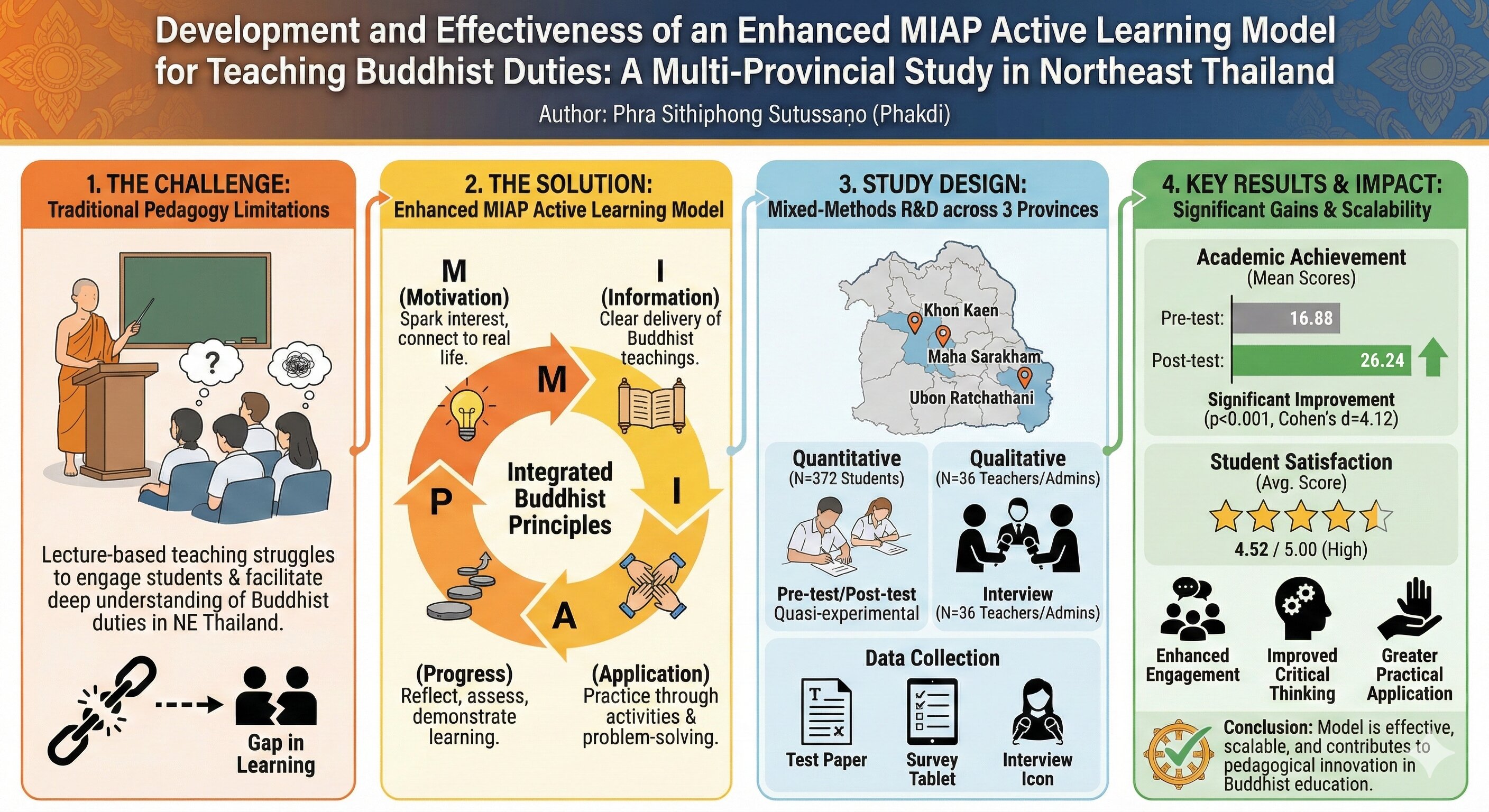 • Development and Effectiveness of an Enhanced MIAP Active Learning Model for Teaching Buddhist Duties in Phrapariyattidhamma Schools: A Multi-Provincial Study in Northeast Thailand